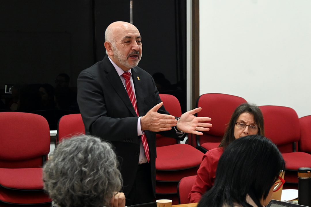 Tras las exposiciones de las autoridades, se dio el paso a las consultas de las y los participantes de la reunión, las que incluyeron diversos aspectos de la gestión y el quehacer académico, tales como el informe de la auditoría realizada por la Contraloría Regional del Biobío, la infraestructura de las Facultades, la apertura de carreras, el impacto de las nuevas exigencias de ingreso a las pedagogías, la virtualización de los programa vespertinos y los mecanismos de registro de asistencia y horario docente.