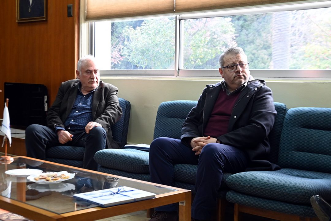 En el encuentro entre ambas autoridades también estuvieron la directora general de Relaciones Institucionales Nelly Gómez Fuentealba, el director de Innovación Mario Núñez Decap, el director del Centro de Estudios Territoriales e Interdisciplinarios, CETI-UBB, Javier León Aravena y el director del Centro de Investigación en Tecnologías de la Construcción Ariel Bobadilla Moreno.