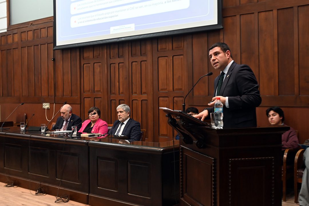 La actividad se llevó en el auditorio de la Facultad de Ciencias Jurídicas y Sociales de la UdeC, el lunes 25 de agosto, y permitió conocer distintas miradas en torno a la iniciativa que actualmente se tramita en el Congreso y que pone fin al crédito con aval del Estado, junto con proponer un plan de reorganización y condonación de deudas educativas.
