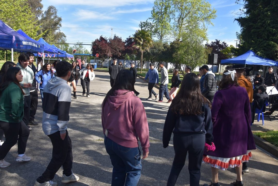 Una de las actividades que motivó la participación de los y las estudiantes que asistieron, además de los juegos típicos e invitados sorpresa, fueron las clases de cueca que impartió, en conjunto con sus estudiantes, el profesor de Educación Física del Departamento de Arte, Cultura y Comunicación, director del grupo Trabún y director del taller de cueca UBB, Camilo Bravo, quien agradeció el alto interés por este taller que inicialmente se realiza en el mes patrio, pero que buscan transformarlo en un club con cara al futuro.