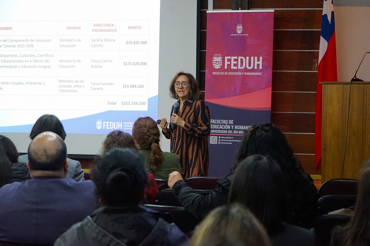 La decana de la Facultad de Educación y Humanidades de la Universidad del Bío-Bío, Dra. Fancy Castro Rubilar, presentó la Cuenta Pública correspondiente al período noviembre 2024-septiembre 2025, instancia en la que compartió con la comunidad universitaria y autoridades regionales los principales avances, logros y desafíos de su gestión al frente de la Facultad.