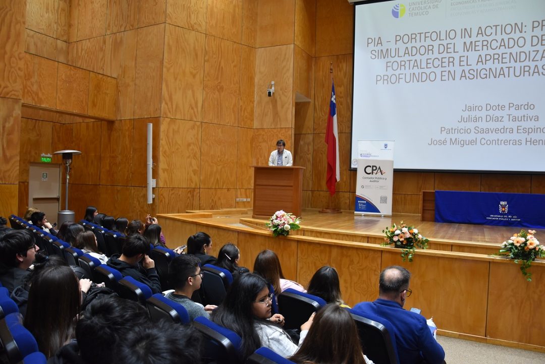 En el seminario se presentó el académico de la Universidad Católica de Temuco, Jairo Dote Pardo, con “PIA – Portafolio in Action: Propuesta de un simulador del mercado de valores para fortalecer el aprendizaje activo y profundo en asignaturas de finanzas”, la académica de la Universidad Católica del Maule sede Curicó, Pilar Ahumada Delafuente, con “Metodologías de gamificación para el aprendizaje contable”, y cerrando la jornada las académicas Soledad Quezada y Verónica Peña, de la Universidad del Bío-Bío, con “Gamificación contable con identidad visual”.
