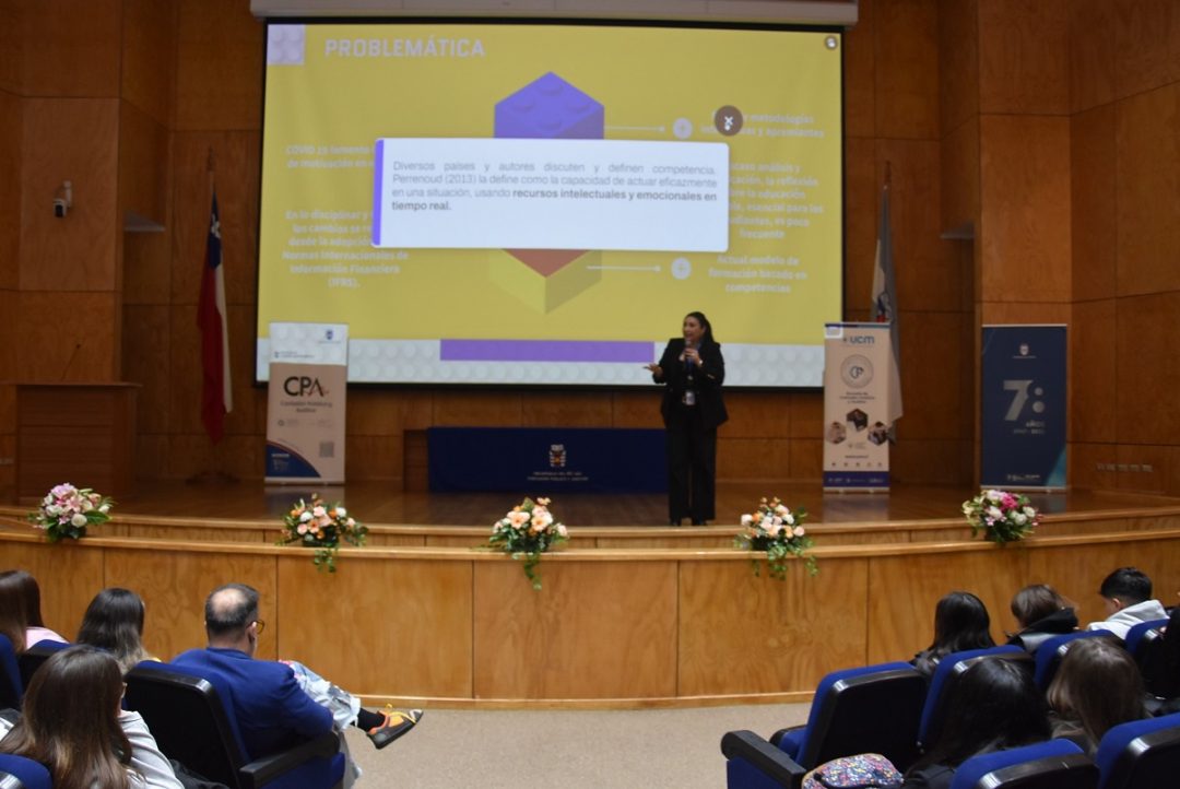 La directora de proyecto sostuvo que la ponencia presentada junto a la académica Soledad Quezada, es “una iniciativa que evidencia la colaboración interdisciplinaria entre las carreras de Contador Público y Auditor y Diseño Gráfico de la UBB, destacando la integración creativa entre pedagogía, tecnología y diseño en la enseñanza contable”.