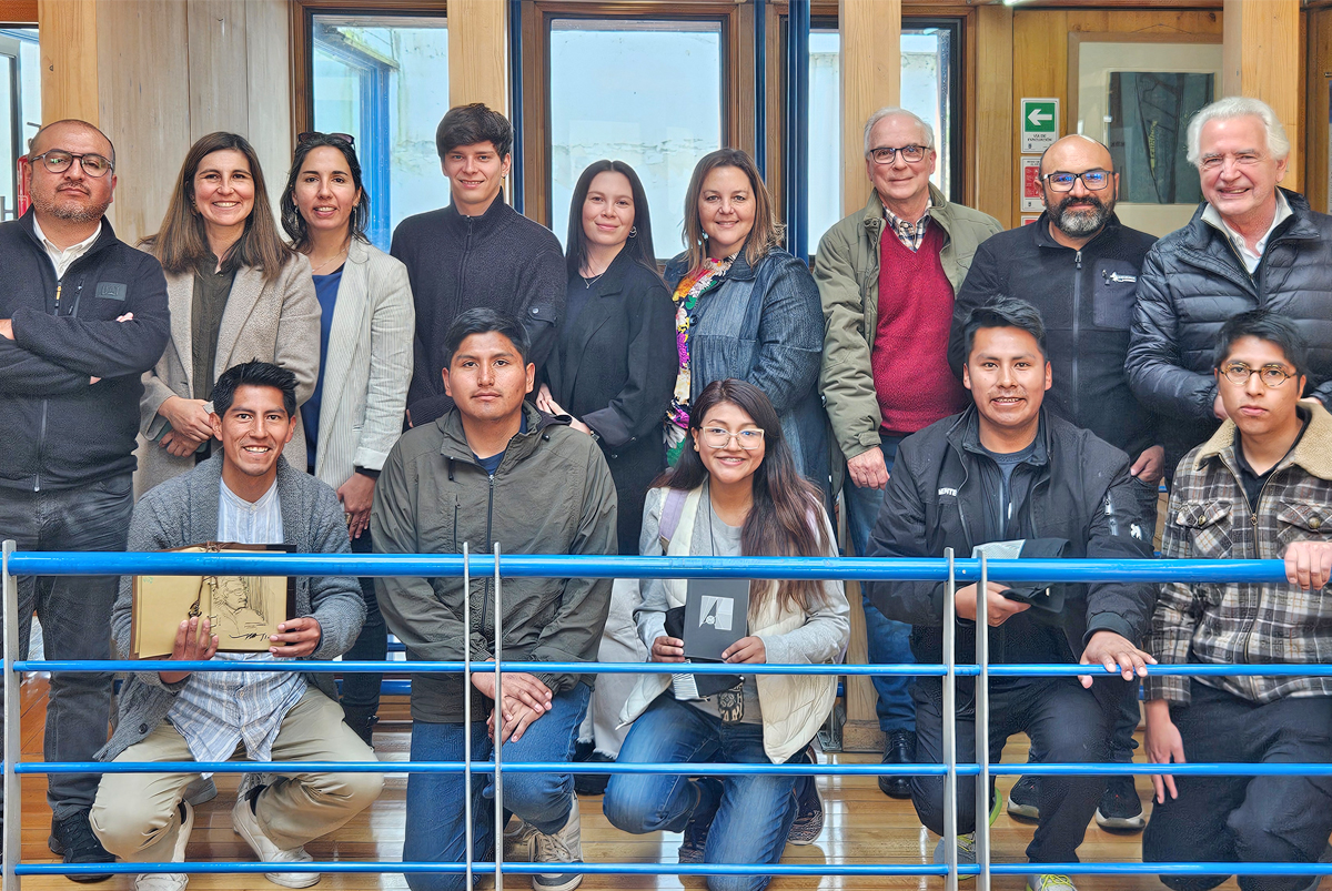Una delegación compuesta por un cuerpo docente, profesionales y estudiantes de la Facultad de Artes, Diseño y Urbanismo de la Universidad Mayor de San Andrés (UMSA) de Bolivia visitó nuestra facultad. La instancia tuvo como propósito generar un espacio de diálogo e intercambio académico orientado a proyectar acciones conjuntas en docencia, investigación y vinculación con el medio. La delegación boliviana, integrada por doce representantes, fue encabezada por el profesor Roberto Rojas Aldana, director de la Fundación Laboratorio de Investigación La Paz y académico de la carrera de Arquitectura de la UMSA. También participaron los profesores Cristian Salazar, Mauricio Cárcamo, Salomón Espejo y Adrián Quisbert, junto a pasantes profesionales y estudiantes del área.