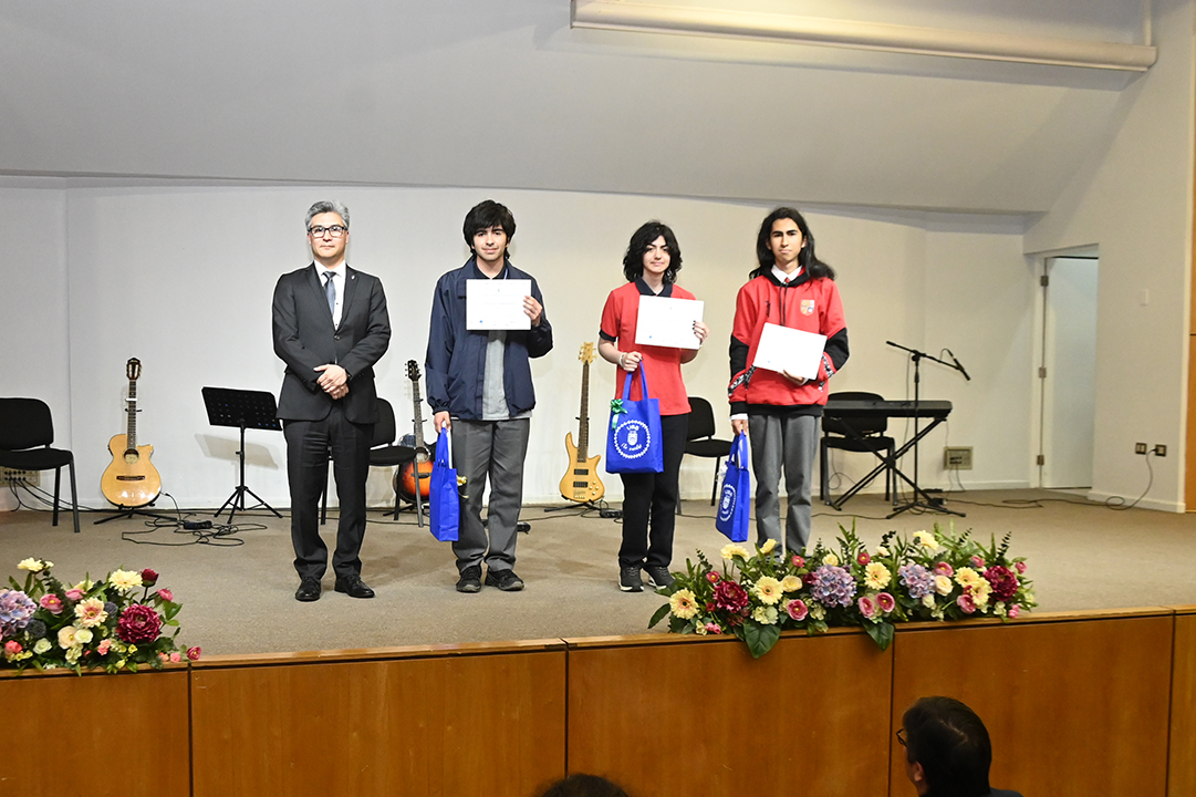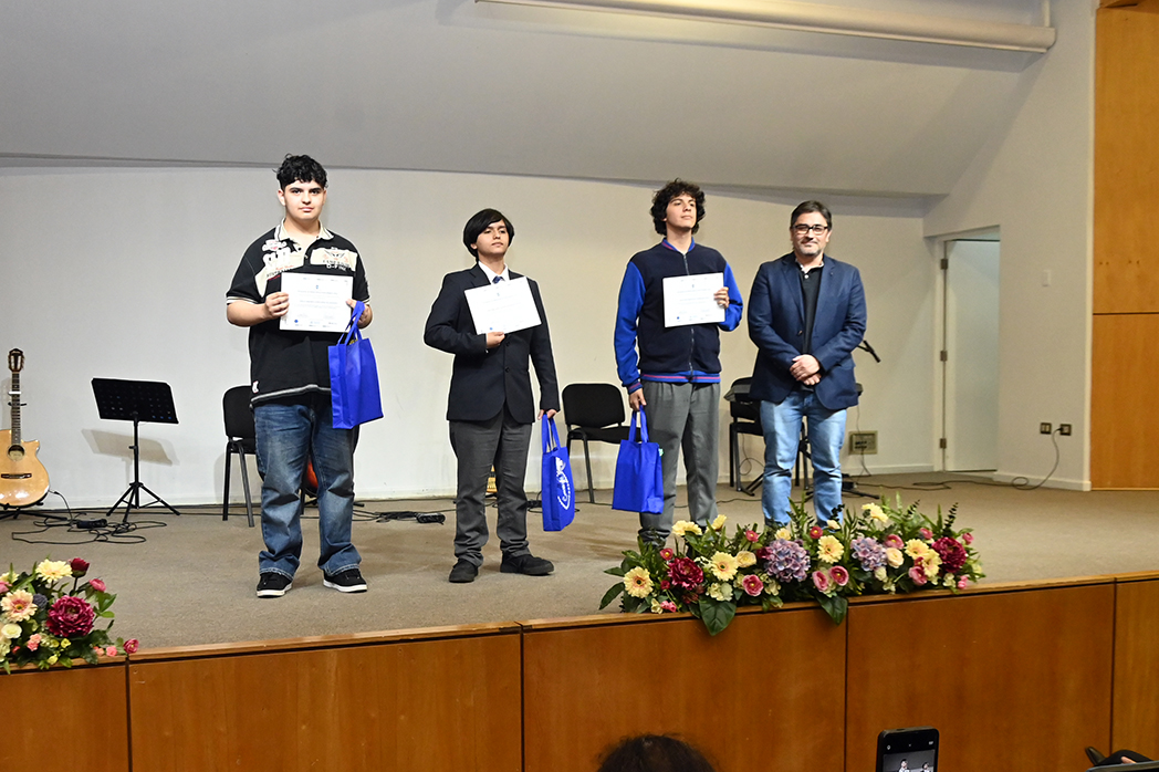 El Premio al Desarrollo Más Creativo que distingue a un estudiante cuya respuesta en la prueba final se destacó no solo por ser correcta, sino por su originalidad, profundidad y notable rigor matemático, recayó en Raúl Carrasco, del Liceo Bicentenario de Excelencia Polivalente San Nicolás.