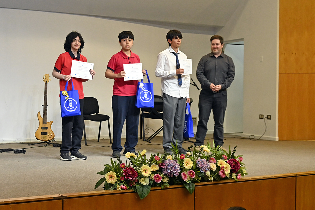 El Premio al Desarrollo Más Creativo que distingue a un estudiante cuya respuesta en la prueba final se destacó no solo por ser correcta, sino por su originalidad, profundidad y notable rigor matemático, recayó en Raúl Carrasco, del Liceo Bicentenario de Excelencia Polivalente San Nicolás.