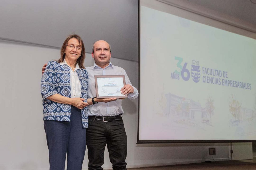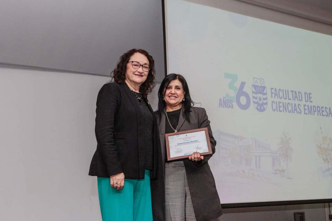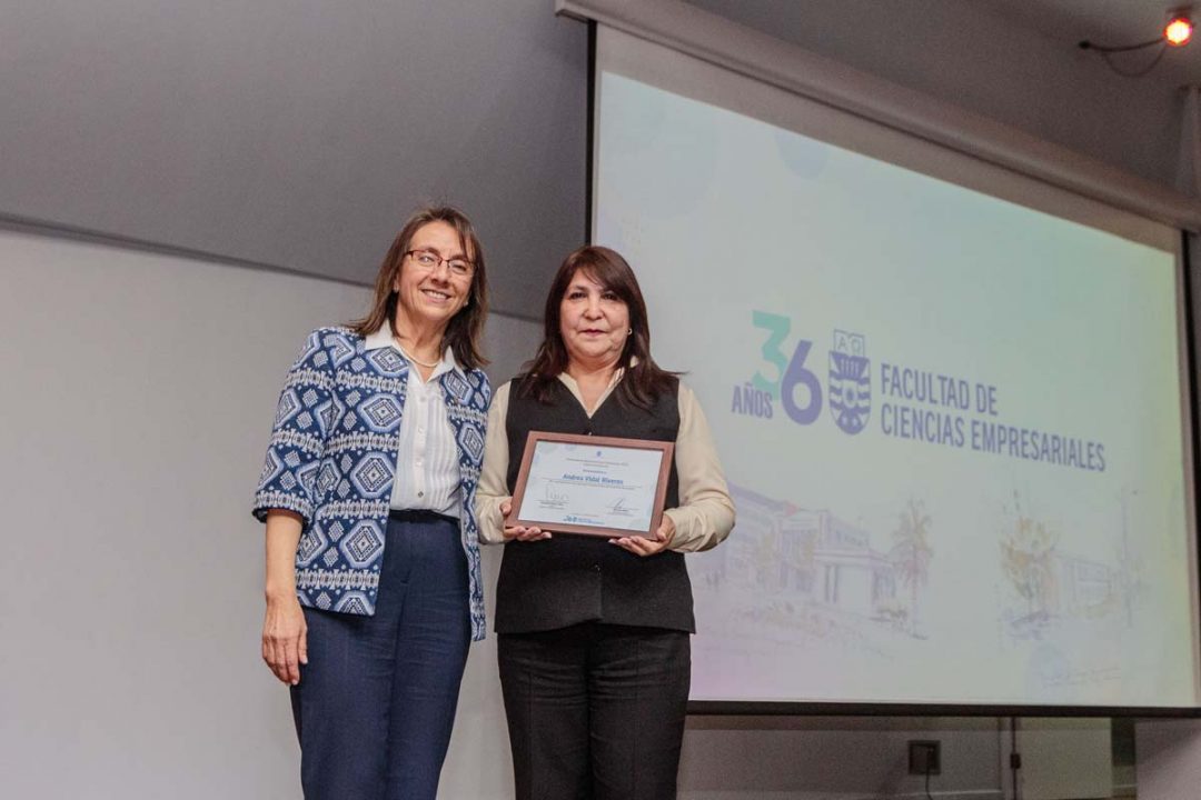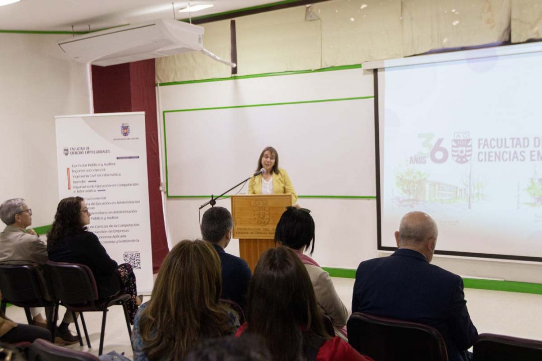 En el marco del trigésimo sexto aniversario de la Facultad de Ciencias Empresariales, la decana Dra. Elizabeth Grandón Toledo, dio cuenta pública sobre su gestión en el último año destacando los esfuerzos realizados para fortalecer la formación de pre y posgrado, la investigación aplicada y la transferencia de conocimiento, así como la vinculación con el medio.