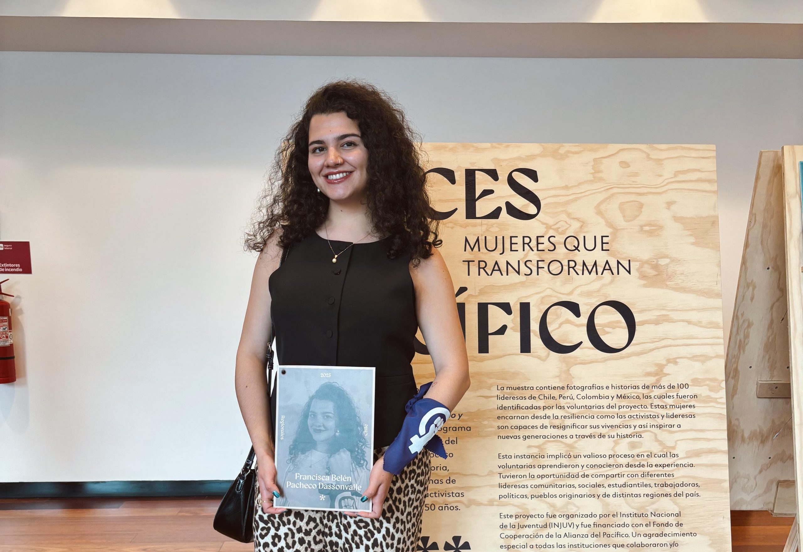 La estudiante de quinto año de la Escuela de Trabajo Social de la sede Chillán, Francisca Belén Pacheco Dassonvalle, fue distinguida como Lideresa Regional de Ñuble en el marco del proyecto “Juventudes, Feminismo y Memoria”, iniciativa perteneciente al Voluntariado de la Alianza del Pacífico. El reconocimiento fue otorgado por la Dirección Nacional del Instituto Nacional de la Juventud (INJUV), con participación de la Dirección Regional de INJUV Ñuble, la Dirección Regional de SERNAMEG y el representante regional del Consejo de la Sociedad Civil (COSOC) de las Juventudes de INJUV.