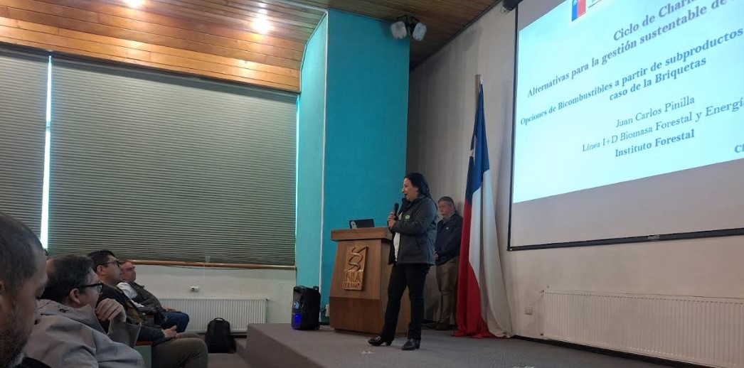 Con el propósito de fortalecer la vinculación entre la academia y el sector productivo, la Oficina de Transferencia y Licenciamiento de la Universidad del Bío-Bío (OTL-UBB)presentó el portafolio tecnológico institucional en el ámbito forestal y maderero a los usuarios del programa de Dendroenergía de la Corporación Nacional Forestal (CONAF), en la ciudad de Chillán. La actividad estuvo a cargo de Roxana Herrera, gestora tecnológica de la OTL-Ñuble, quien dio a conocer las capacidades científicas, innovaciones y desarrollos tecnológicos que la UBB ha impulsado en este sector estratégico para la región.