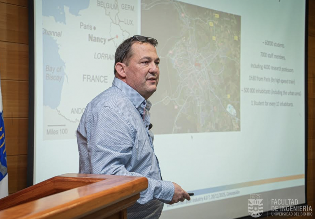 La Universidad del Bío-Bío realizó el Seminario Internacional “Gemelos Digitales e Industria 4.0”, instancia que reunió a especialistas de la Universidad de Lorraine, Francia, para abordar los avances, desafíos y futuro de los sistemas ciberfísicos. La actividad se desarrolló en dos jornadas, el martes 18 y el jueves 20 de noviembre, y fue impulsada por la Facultad de Ingeniería y el Doctorado en Inteligencia Artificial, con el apoyo del Departamento de Ingeniería de Procesos y Bioproductos, Departamento de Ingeniería Eléctrica y Electrónica, el Laboratorio de Sistemas Industriales Inteligentes y el Programa de Absorción Tecnológica para la Innovación 2024, PATI-UBB.