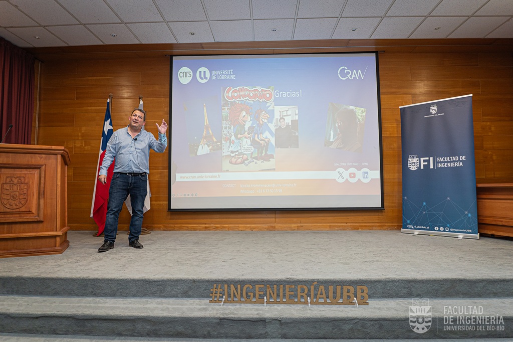 Durante su exposición, el profesor remarcó la larga colaboración entre la UBB y la Universidad de Lorraine: “Tenemos una historia de cooperación y amistad con colegas de esta universidad, con quienes hemos compartido proyectos, investigación y formación por muchos años”, afirmó.