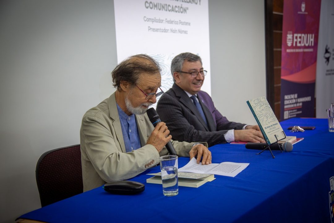 Ante un salón lleno, el académico Dr. Federico Pastene encabezó el lanzamiento del libro «50 Años de Poesía (1972-2022). Pedagogía en Castellano y Comunicación». Es un compilado con creaciones de egresados y estudiantes de esta carrera, que además celebra en grande su 53° aniversario. Fue una de las primeras en habilitarse en la entonces Sede Ñuble de la Universidad de Chile.