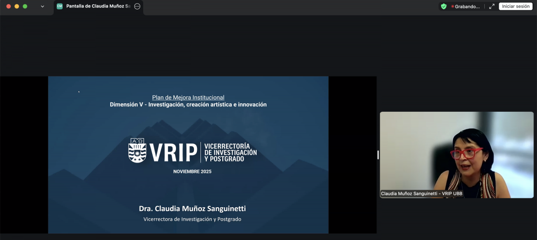 La Universidad del Bío-Bío llevó a cabo, el viernes 28 de noviembre, su segundo webinar con el objetivo de mantener informada a la comunidad universitaria sobre los avances del Plan de Mejora Institucional (PMI) en el marco del proceso de acreditación. En esta ocasión, el encuentro se centró en los progresos vinculados a la dimensión de Investigación, Creación e Innovación, uno de los ejes estratégicos del desarrollo institucional.