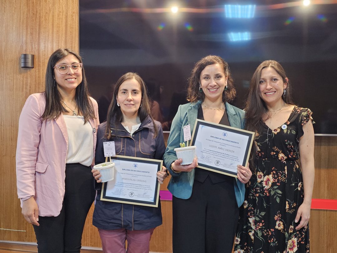 Durante la ceremonia, se reconoció la destacada trayectoria de profesionales que han aportado al fortalecimiento del Trabajo Social desde diversos ámbitos: Andrea Palma Contreras, Lissette Muñoz Lorenzen, Carolina del Pilar Clavería Sánchez (20 años de egreso).