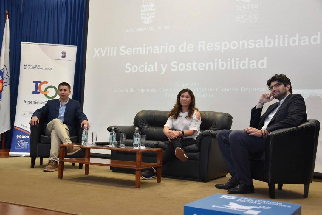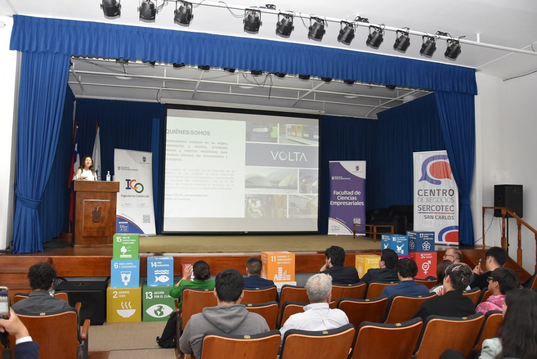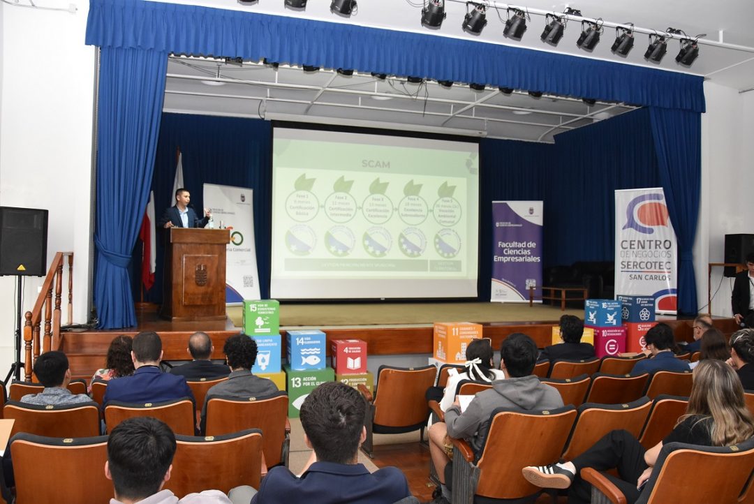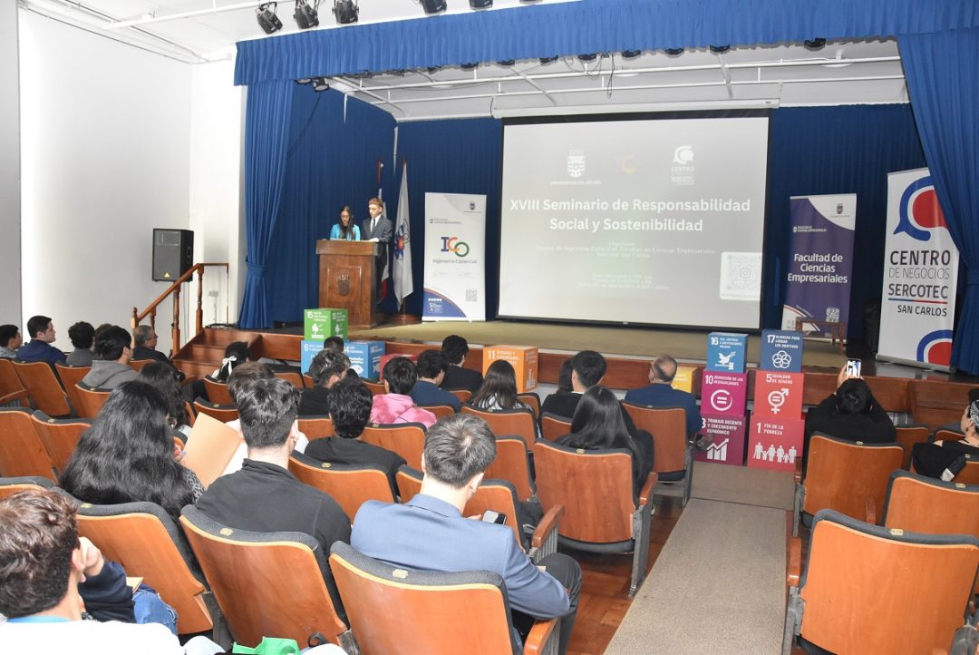 La Sala Schäfer del Centro de Extensión de la Universidad del Bío-Bío (UBB) fue el espacio elegido para realizar el XVIII Seminario de Responsabilidad Social y Sostenibilidad con el tema central “Sostenibilidad con propósito”, instancia organizada por el cuarto año de la asignatura Emprendimiento de Ingeniería Comercial (ICO) sede Chillán, curso que dirige el académico Tomás Zapata Soto, y el Centro de Negocios Sercotec San Carlos.
