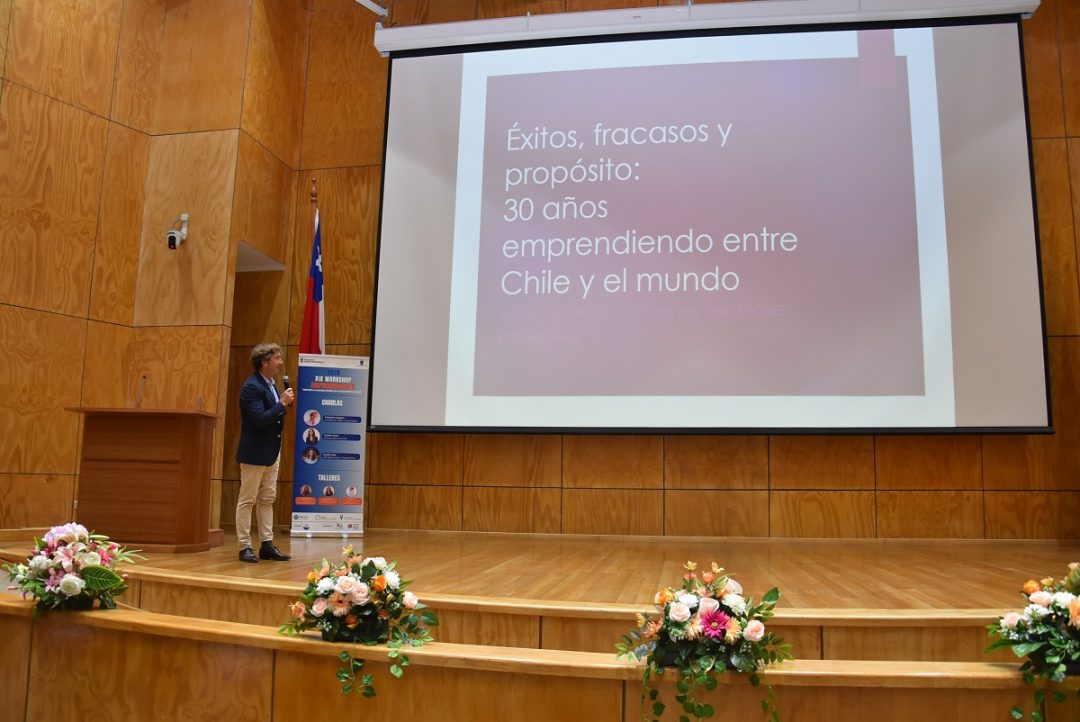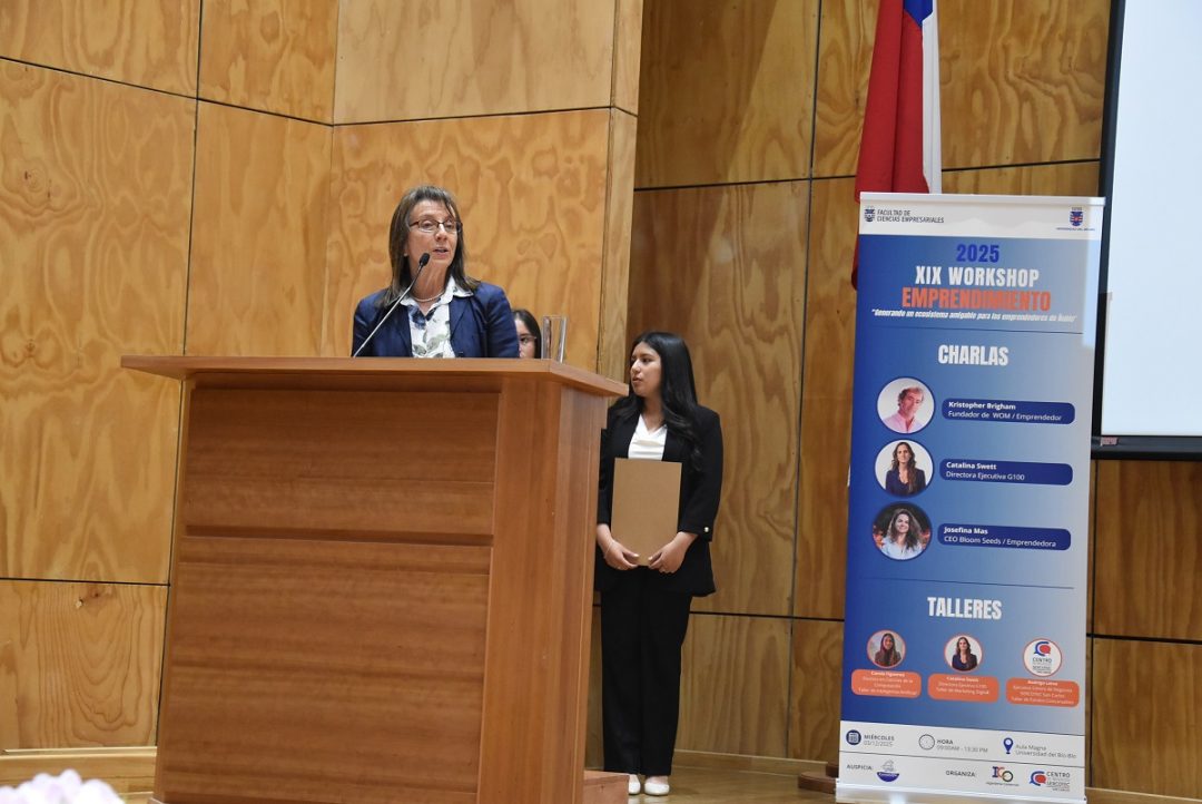El fundador de la compañía WOM, Kristopher Brigham, la directora de la corporación G100 Chile, Catalina Swett, la fundadora de La Marquesa Ediciones, Frau Mujica, y la CEO de Bloom Seeds, Josefina Mas, fueron quienes presentaron sus experiencias en la versión 19 del Workshop de Emprendimiento de la Universidad del Bío-Bío (UBB), denominado “Generando un ecosistema amigable para los emprendedores de Ñuble”.