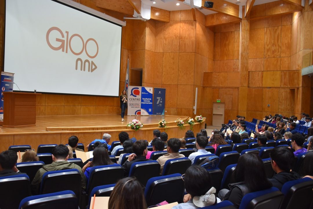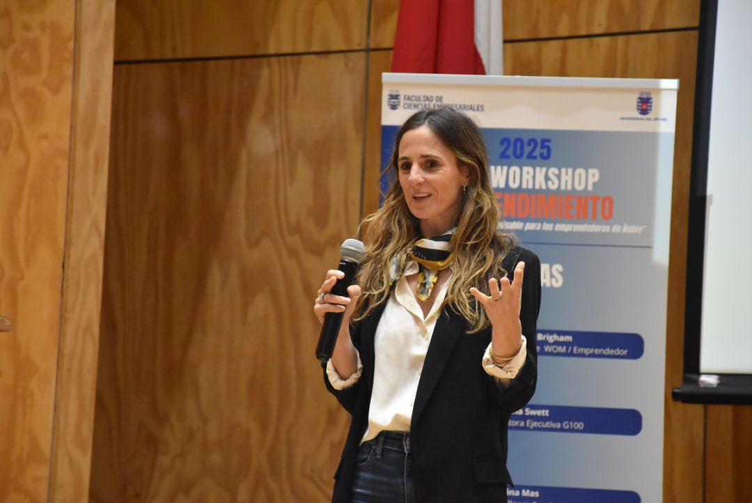 Ante una audiencia compuesta por la comunidad universitaria UBB y emprendedores/as de Ñuble, la primera expositora fue la directora de la organización G100, Catalina Swett, quien explicó el propósito de la corporación que lidera y que nació como un proyecto de empresarias/os. “El G100 nace como una iniciativa genuina de poder ayudar y devolverle la mano al país y a aquellos emprendedores que quieren y tienen la posibilidad porque creen fuertemente en ello, pero que no han tenido las mismas oportunidades”, agregó.