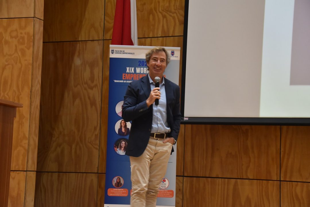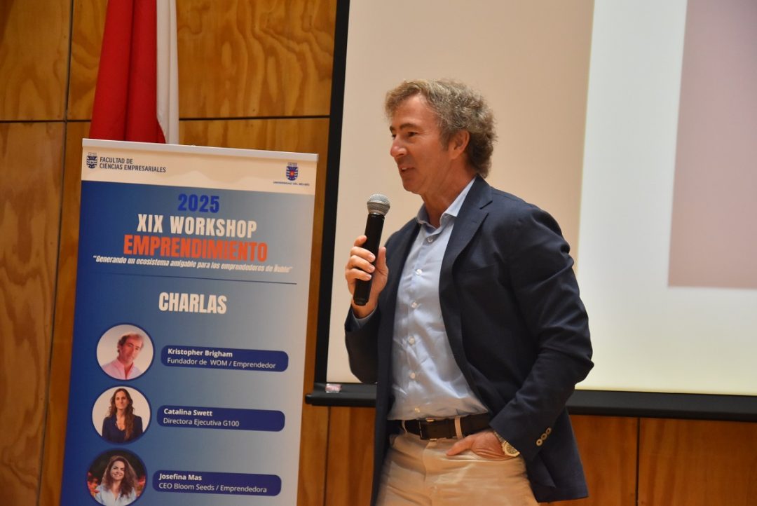 El último expositor fue el empresario estadounidense, inversionista y fundador de la compañía WOM, Kristopher Brigham, quien cerró una jornada completa de aprendizaje. Con 30 años de emprendimiento en Chile y el mundo en el área de las telecomunicaciones, tecnología y servicios, el empresario explicó a la audiencia su camino de éxitos, fracasos y el sentido de propósito.