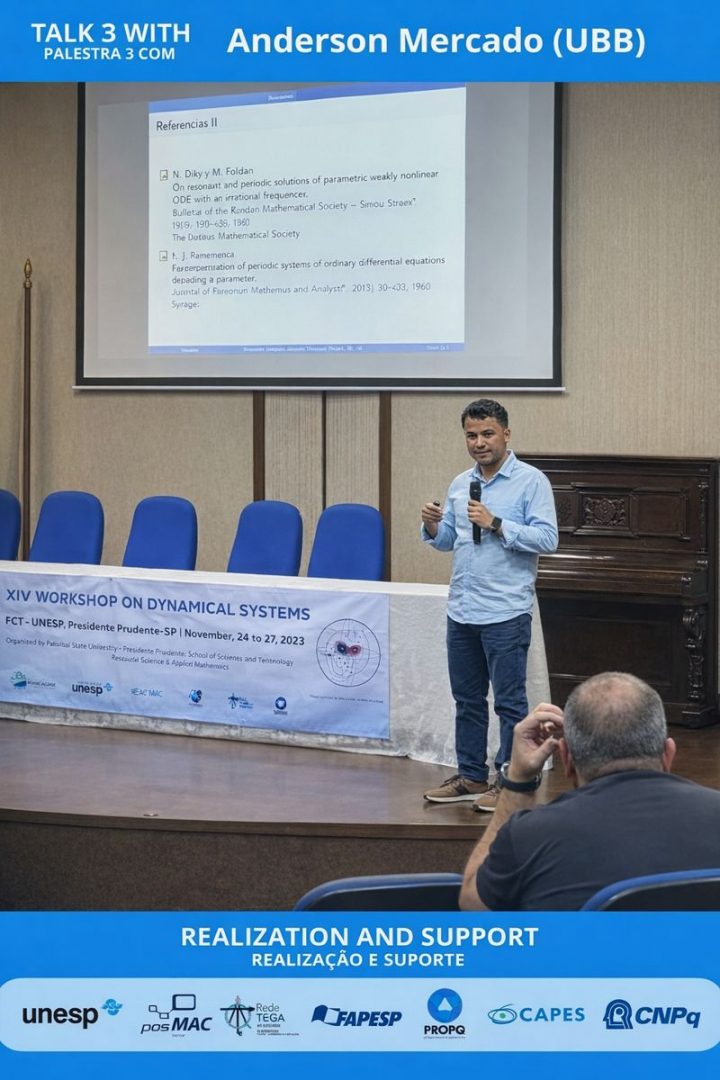 En el XIV workshop on dynamical system, organizado por la Universidad Estadual Paulista en la ciudad de Presidente Prudente, estado de São Paulo, Brasil, expuso Anderson Mercado (Doctorado en Matemática Aplicada), en tanto, Juan Huancas (Doctorado en Matemática Aplicada), Wladimir Oyarzo y Diego Vergara (Magíster en Matemática Aplicada), se presentaron en el Congreso Anual de la Sociedad Matemática de Chile (SOMACHI), en Vicuña.