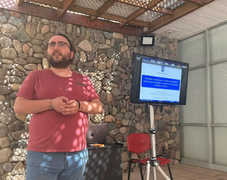 Asimismo, el estudiante agradeció “el apoyo brindado por la Beca de Apoyo para Asistencia a Eventos Científicos que financió mi ponencia en la SOMACHI, a mi profesor tutor Dr. Claudio Vidal, quién me alentó a presentar mis resultados parciales, y a las doctoras Paulina Mancilla y Yocelyn Pérez, que junto al Dr. Vidal, organizaron la sesión llamada Ecuaciones diferenciales Ordinarias-Funcionales y Aplicaciones».
