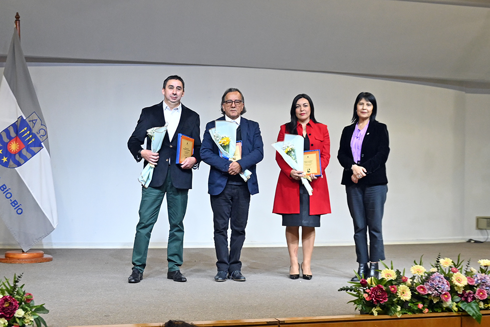 A este último le correspondió entregar su reconocimiento a la funcionaria Nancy Tapia Letelier, quien cumple 45 años de servicio en la UBB, así como a Eduardo Castillo Morales, Gilda Espinoza Valenzuela, Guillermo Neira Neira, Carlos Picarte Figueroa y Verónica San Martín Cea, recientemente jubilados.
